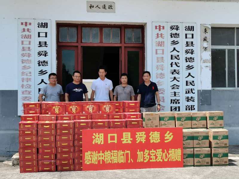 截止7月30日,中粮、加多宝共对湖北省武汉市、黄石市、洪湖市等25个市县乡捐赠中粮福临门大米(5KG装)1832袋、中粮福临门食用油100箱、加多宝凉茶16600箱、昆仑山矿泉水4500箱;同时对江西省南昌县、新建县、湖口县等10个市县捐赠中粮福临门大米(10KG装)1000袋、中粮福临门食用油180箱、加多宝凉茶10000箱、昆仑山矿泉水1500箱;对安徽省黄山市、颖上县、阜南县等4个防洪救灾单位捐赠加多宝凉茶1150箱、昆仑山矿泉水562箱。